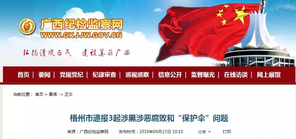 梧州市通报3起涉黑涉恶腐败和“保护伞”问题