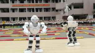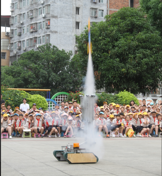 让孩子们最嗨的就是和机器人一起跳舞了,《青春纪念册》音乐一响起,孩子们便情不自禁地随着机器人一起起舞,乐在其中。接下来的人机大战解魔方、机器人灭火、火箭升空,以及学校车模社团成员展示车模赛道表演都极其精彩,孩子目不转睛,生怕错过一个有趣的画面。