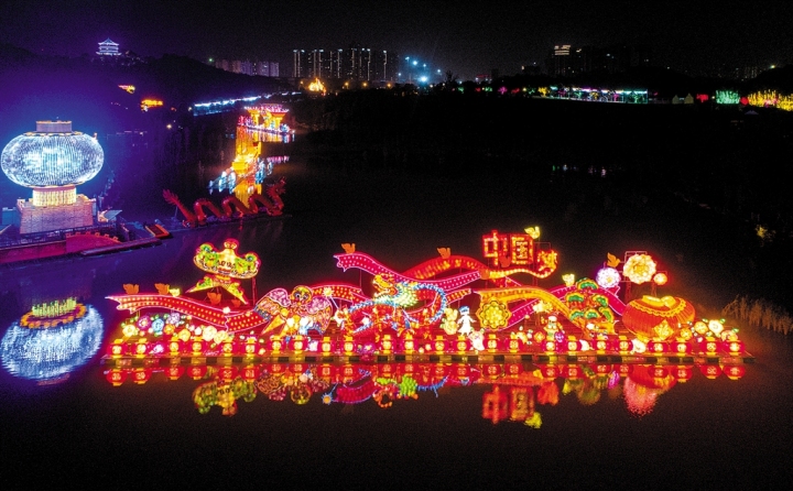 灯展现场将一个个精巧别致的工艺灯和大型灯相结合,巧妙布展于青秀山园林山水之中,构成一幅灯中有景、景中有灯的美妙图景,湖光山色、亭台水榭与“灯”融为一体,形成灯景交融、气势磅礴、流光溢彩的宏大场面,游客可体验白天观景、夜间观灯的独特景观,感受“人在灯中游”的绝美意境。