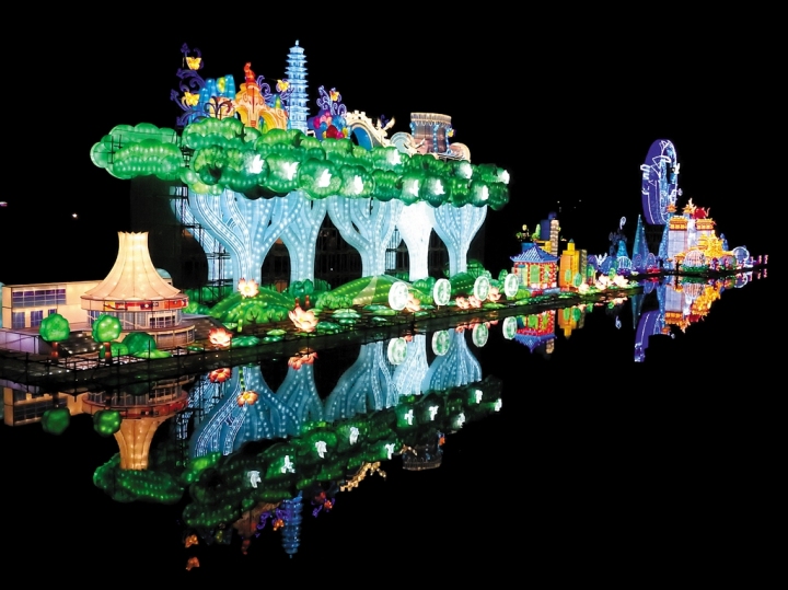 本次灯展在构思和制作工艺上颇具创新,引入国际顶尖新技术,通过科技创意的助力,充分展示有形、有色、有声、有光、有动态的灯组效果,表现出精湛的工艺水平和神奇的创造力。