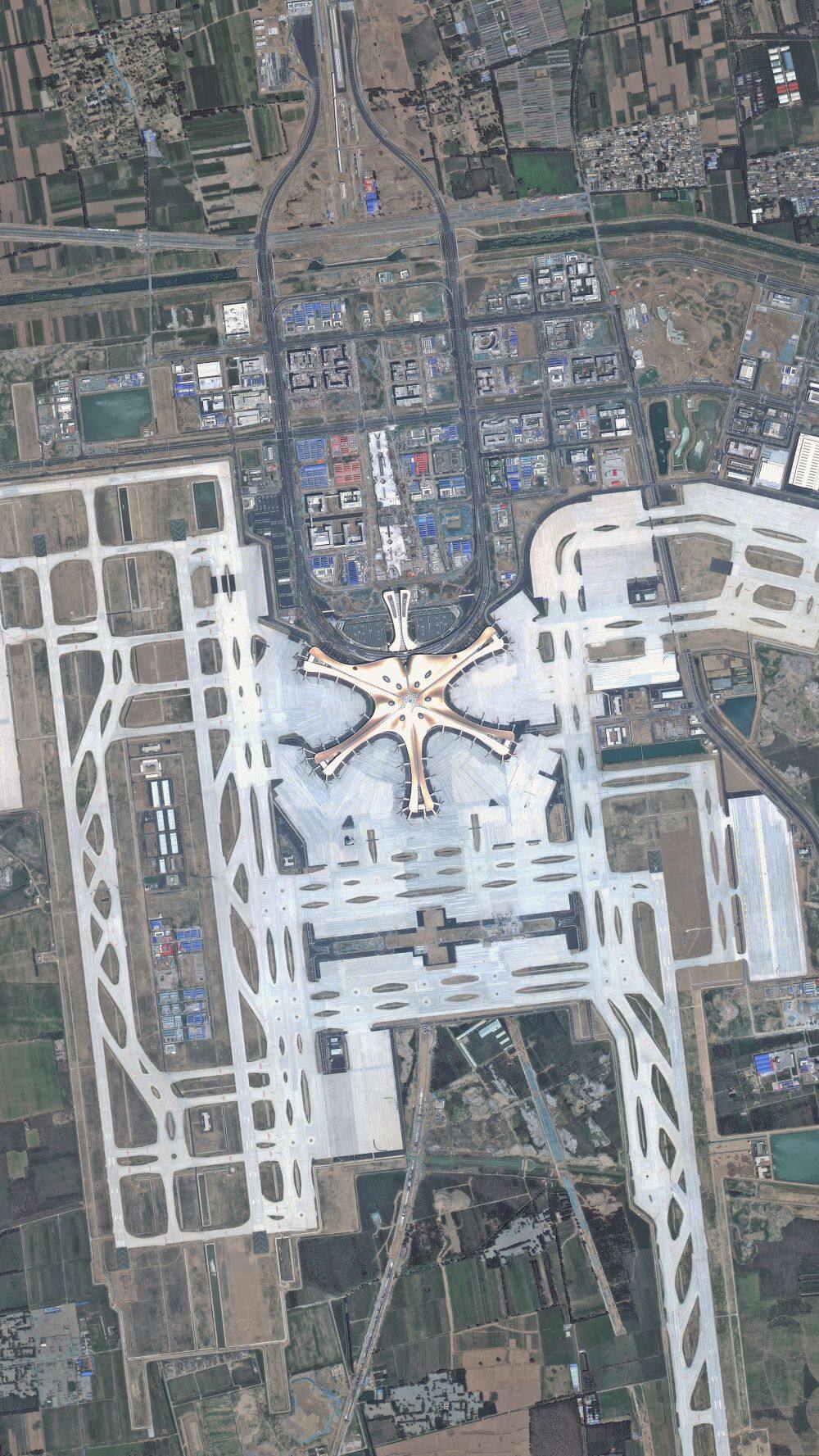 大兴国际机场卫星俯瞰图。卫星数据来源:高分二号