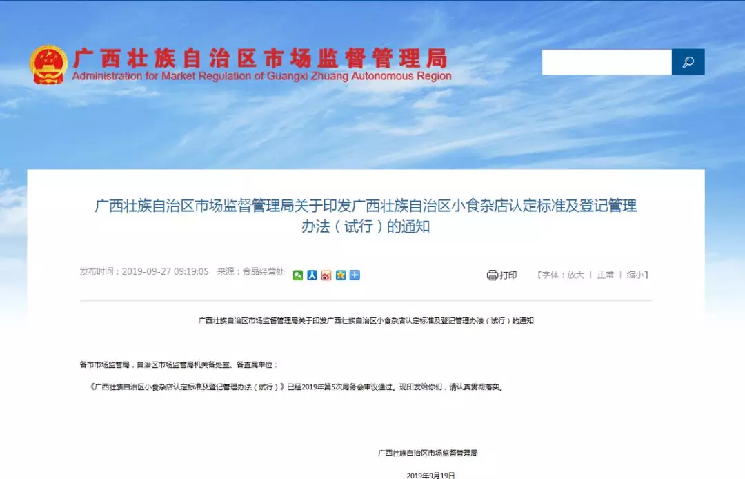 今年1月,《广西壮族自治区食品安全条例》出台,明确了小食杂店的定义,规定了小食杂店认定标准。9月27日,广西市场监管局公布《广西壮族自治区小食杂店认定标准及登记管理办法》(以下简称《办法》),进一步细化对小食杂店的管理。