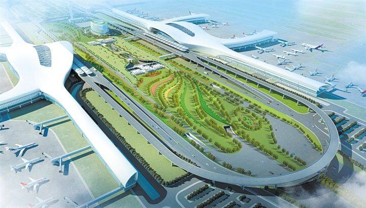 南宁国际空港综合交通枢纽工程鸟瞰图(效果图)
