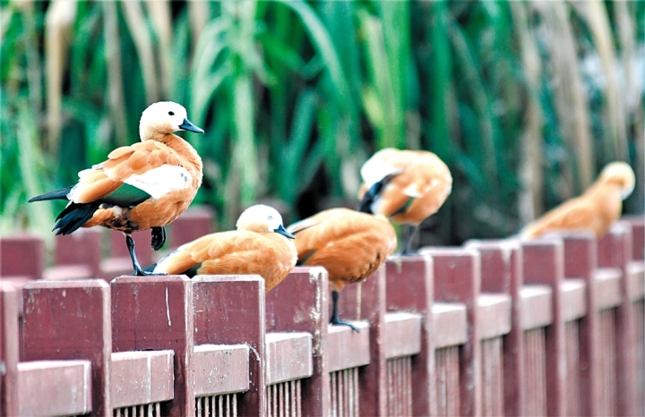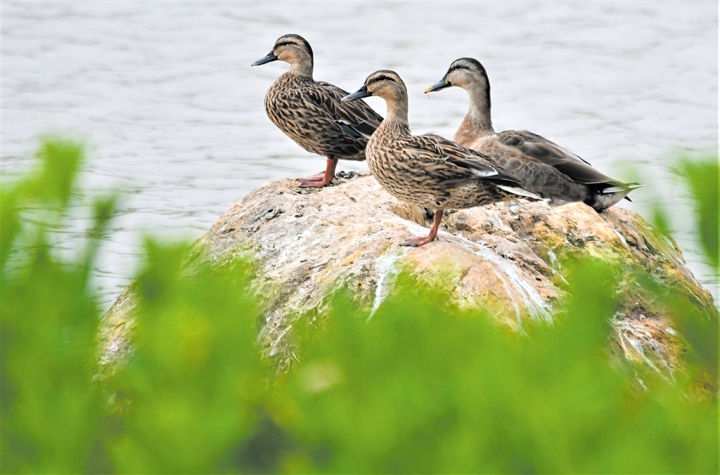 为了探访斑嘴鸭的踪迹,记者昨日来到了五象湖公园。在工作人员的带领下,记者首先来到公园野生动物“大本营”——天鹅湖。在这个用来筑巢引鸟的湖边摇曳着芦苇、水草,湖中心有一个天然浅滩。有的鸟儿在浅滩嬉戏觅食;有的在木栈道悠闲漫步;有的则在栏杆上浅眠;有的鸟儿看到人走近,就扑棱着翅膀飞进茂密的芦苇丛躲起来……这一派自然的生态美景让人忍不住放轻脚步,生怕惊扰了这些可爱的小精灵们。