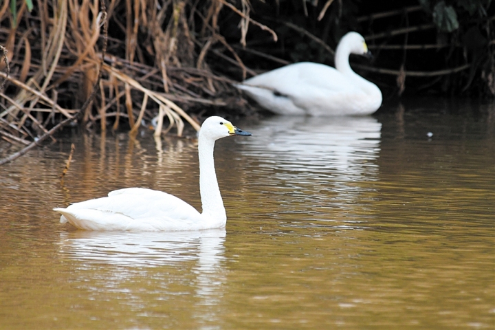 白天鹅在湖中游弋