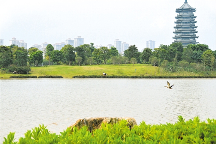 有一些观鸟爱好者反映,曾在公园拍到金丝雀等罕见的鸟儿。“目前,我们尚未发现有成批的候鸟迁徙来此。但不排除有市民发现的候鸟是它们刚好停留了那么一会儿。”余菲告诉记者,五象湖公园是一个开放的生态环境,时常会有一些鸟儿将此作为“中转站”停留觅食栖息,然后继续迁徙。但目前公园还没有发现特别种群出现,最常见的就是白鹭。为了留住更多的鸟儿,公园有专门的工作人员对这些野生动物进行投喂,保证它们有充足的食物。
