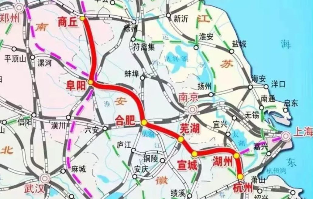 郑阜高铁作为河南米字形高铁的一“捺”,北起郑州南站,经河南郑州、开封、许昌,接入商合杭高铁阜阳西站,设计时速350公里。通车后,郑阜高铁将与商合杭高铁共同形成中西部与华东地区、长三角地区的快速客运通道。