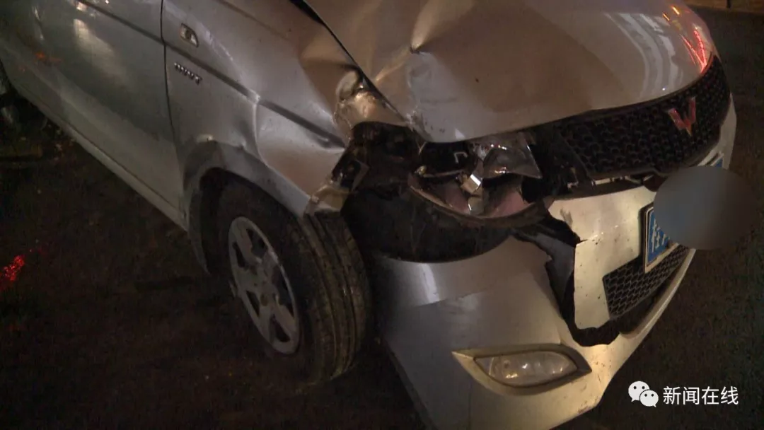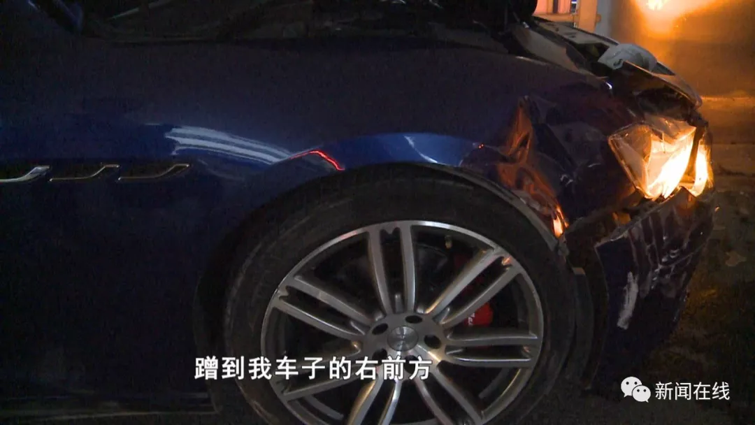 面包车车主邓先生表示,他在直行,最左侧的车道有一辆白色的小轿车超车。白色轿车车主看见绿灯闪了就刹车,由于两车很近,他的面包车稳定性差,车头跑偏,玛莎拉蒂就撞过来了。