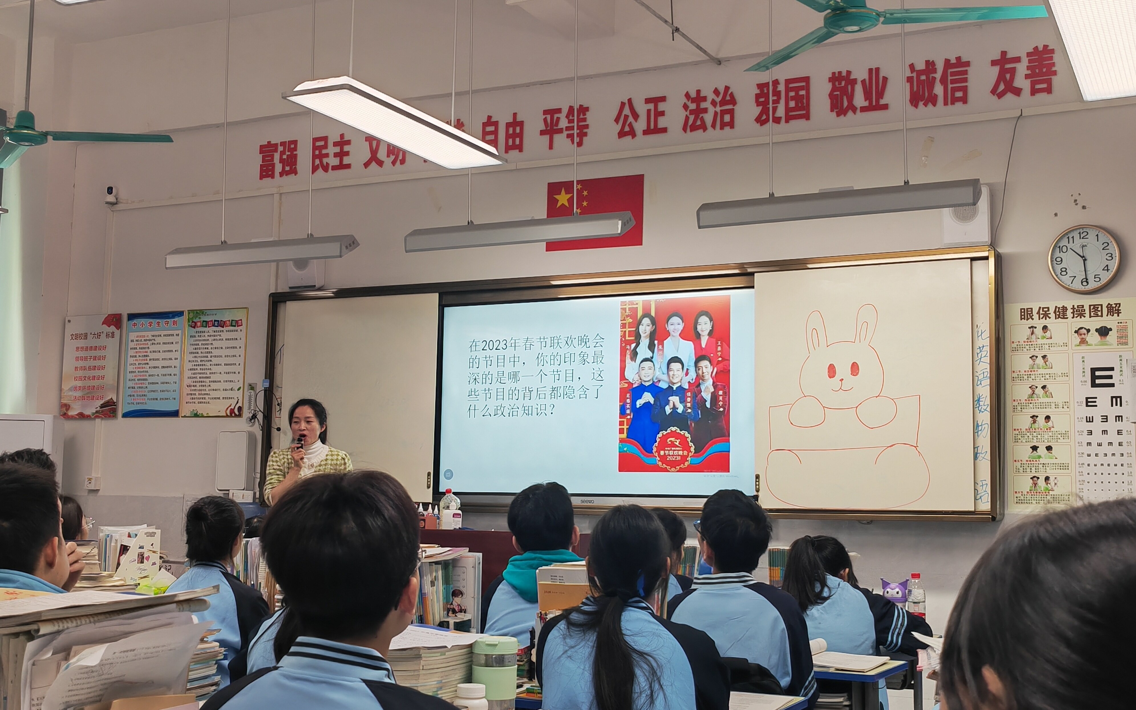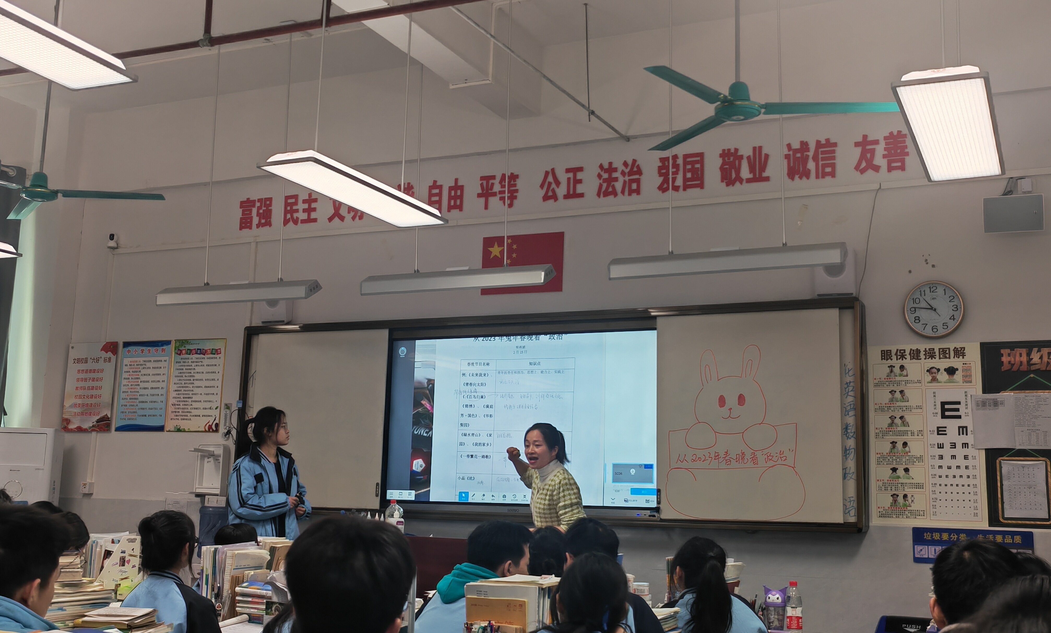 展示课上,学术委员们创意教学,充分展示其课堂创新的“力作”,引起一片喝彩。政治学科委员的《从2023年兔年春晚看“政治”》,引导学生从春晚节目学习政治知识,培养青年学生责任与担当,体现家国情怀;历史学科委员的《全球视野下的新航路开辟》,培养开阔学生的世界观和大局观;地理学术委员的《从地理视角看传统民居文化》,传达中国传统文化特色,增强文化自信……学术委员们的展示课,示范效果良好,吸引了各学科教师前来观摩学习,提升自身课堂教学能力的同时,充分发挥学术委员的智囊作用,助推教师能力提升。