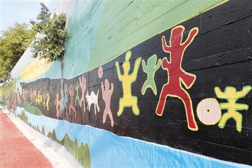 大堤上的墙绘具有壮族元素 记者 程勇可 摄